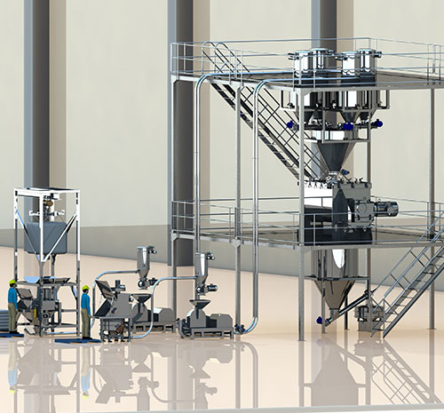 中央厨房供粉系统由投料系统、储存系统、筛分系统、干燥系统、除铁系统、计量系统、混合系统、输送系统等组成,中央厨房供粉系统密闭气力输送避免粉尘外泄,提高投料效率和准确性,精细化计量功能保证产品的一致性和稳定性,中央厨房供粉系统带有配方保密管理,分职位和专人密码设置配方权限,和信息化对接,原料使用数据和MES连接,进行数据化管理,通过智能程序,自动学习对比调整精度参数,确保称重精度等。